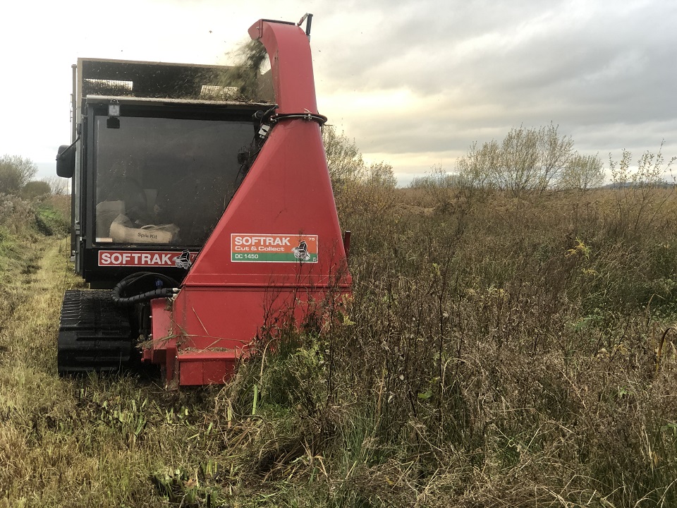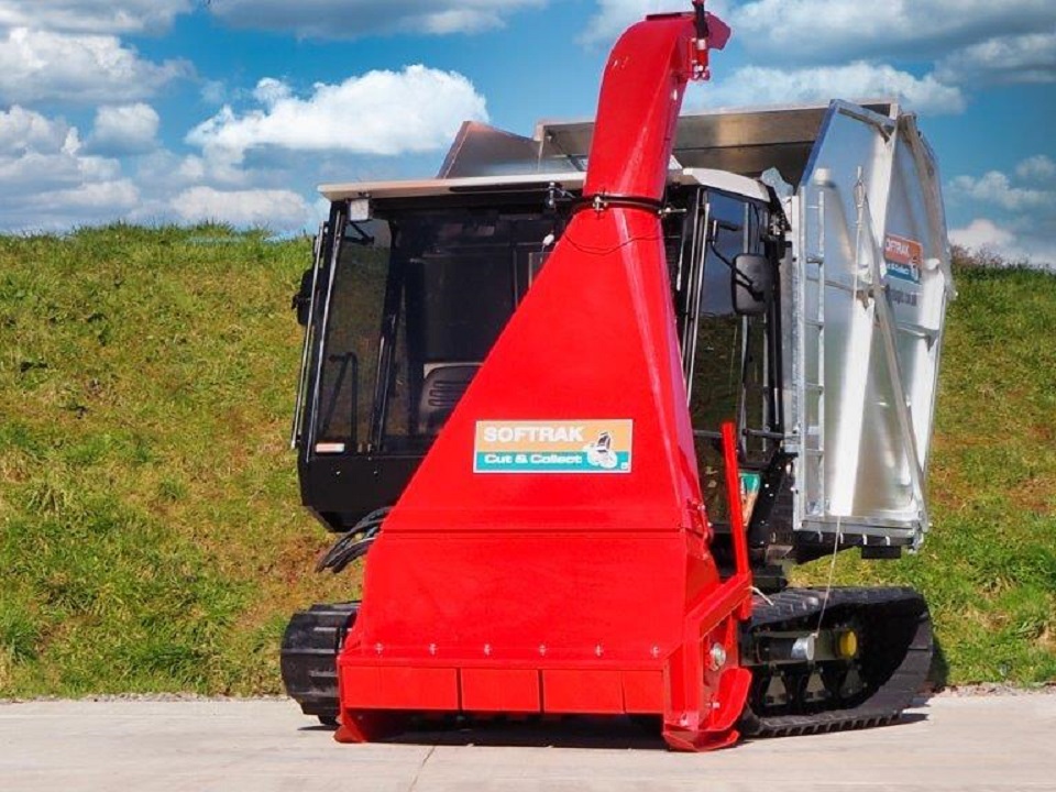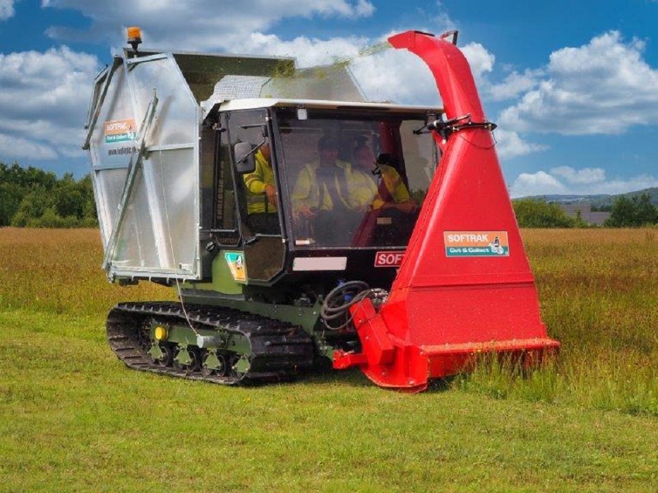 Additionally, the Softrak comes with a ‘Cut and Collect System’. It has a front-mounted direct cut flail harvester system and collection bin. It is ideal for quickly cutting and harvesting a wide range of vegetation, including heather, bracken, gorse etc., on wetland habitats, overgrown scrubland, and other areas.